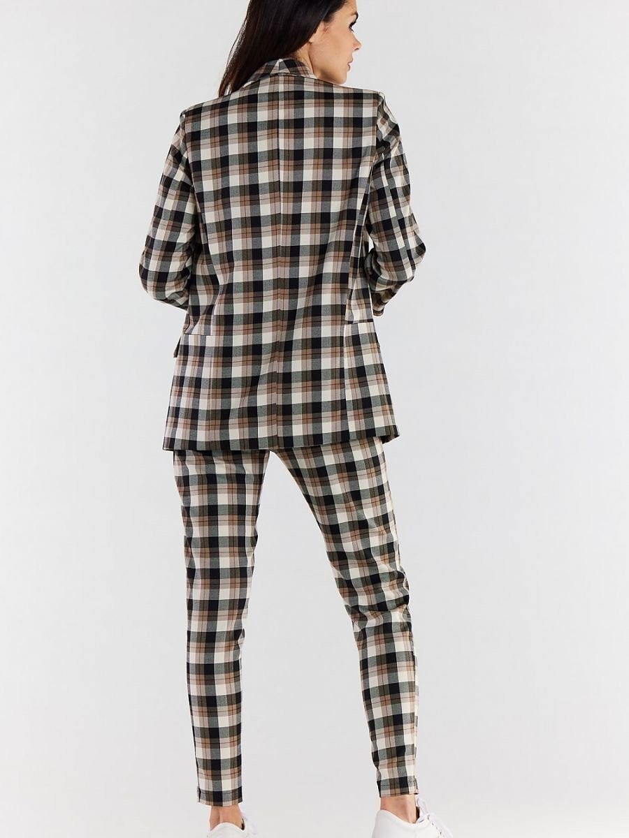 Veste élégante à la coupe urbaine. Fabriqué dans un tissu à carreaux très tendance et très agréable au toucher. Va très bien avec le pantalon A492. Convient non seulement à un style élégant, mais aussi à un style quotidien. La veste est doublée. Conçu et cousu en Pologne.