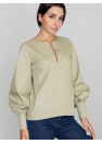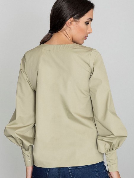 Un chemisier léger à manches bouffantes avec des fermetures à boutons est une bonne combinaison pour les femmes qui apprécient la modernité. Un délicat décolleté en pointe est un atout supplémentaire.