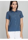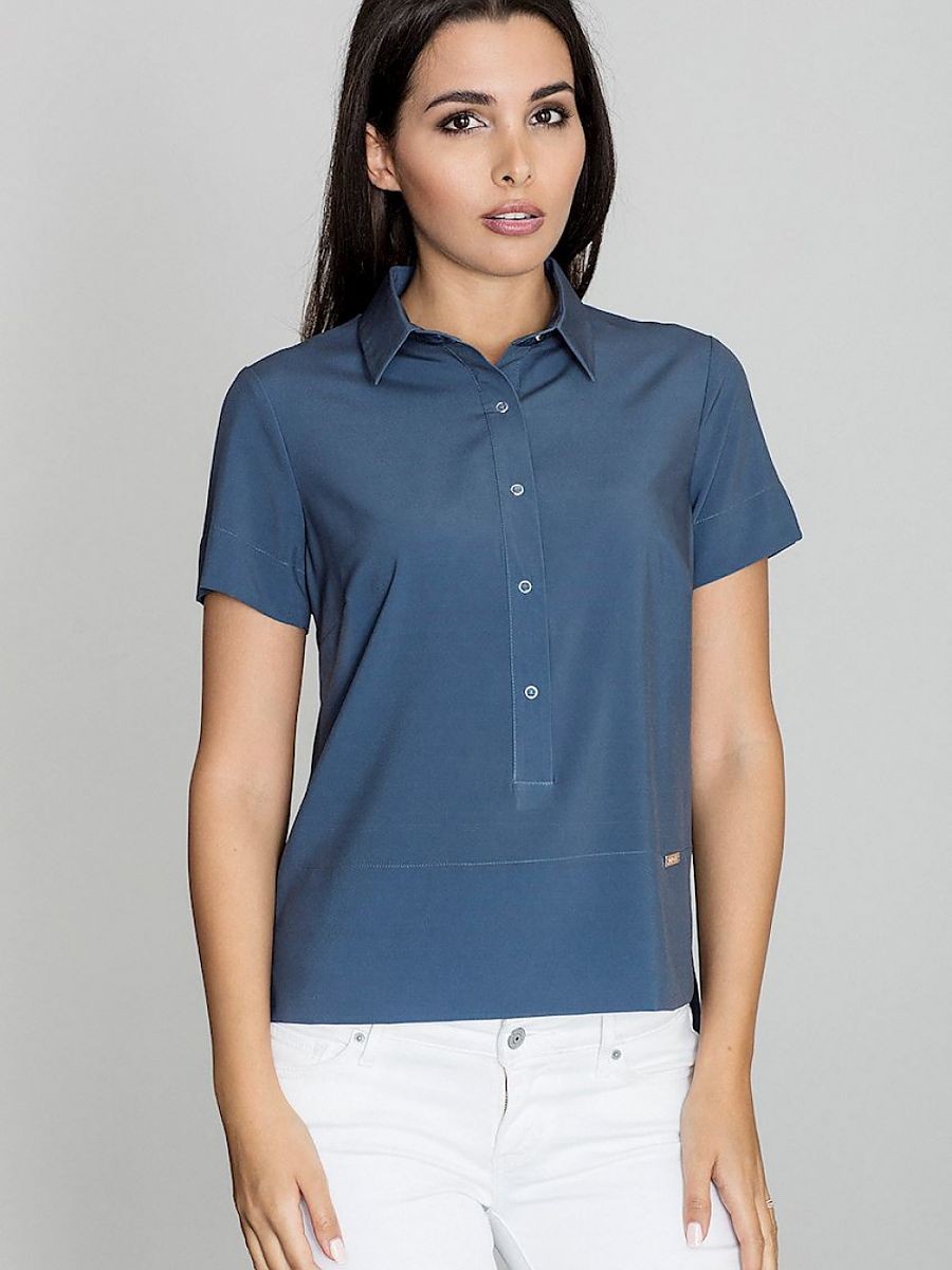 Blouse de couleur unie avec un col, coupe formelle. La moitié du chemisier est fermée par des boutons. Un chemisier parfait aussi bien avec une jupe qu'avec un pantalon.
