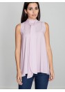 Blouse lisse et évasée, avec épaules apparentes. Des liens décoratifs à l'avant et une fermeture éclair dissimulée à l'arrière.