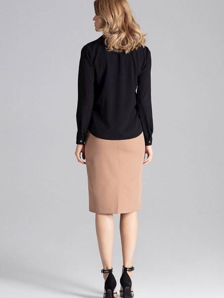 Blouse à coupe droite avec col et manches longues. Pli décoratif sur le devant. Parfait pour de nombreuses occasions.