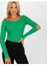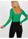 Blouse à manches longues et encolure bateau. Fentes décoratives aux coudes. Découpe profonde dans le dos.