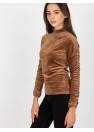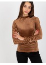 Chemisier en velours à manches longues avec un col montant. Manches décorées d'un pli.