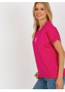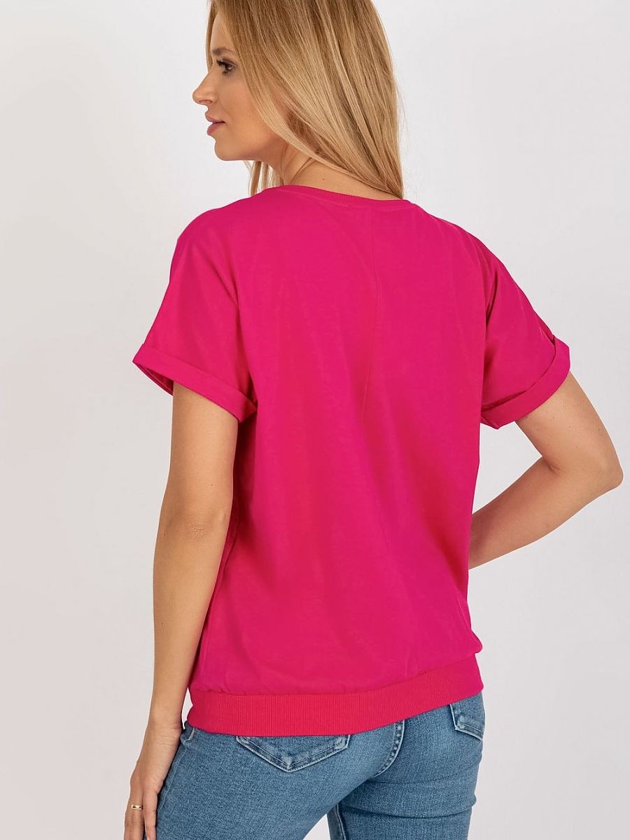 Chemisier pour dames à manches courtes et encolure ronde. Chemisier en matière solide avec un écusson décoratif sur le devant.