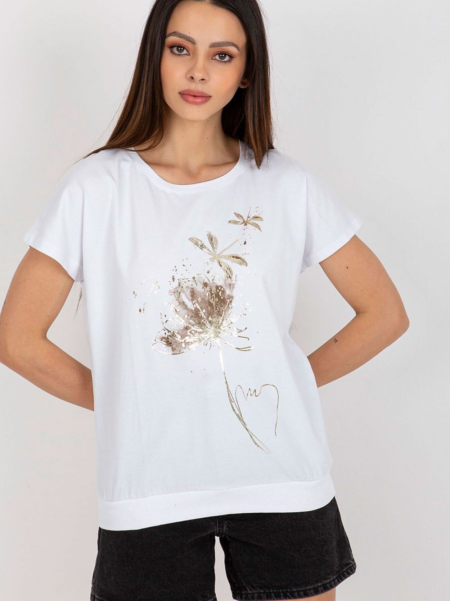Chemisier en coton à manches courtes et encolure ronde. Imprimé décoratif sur le devant.