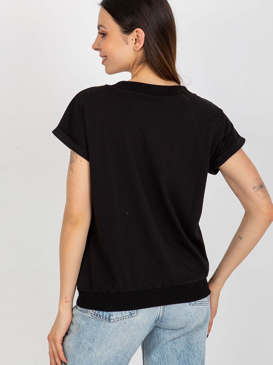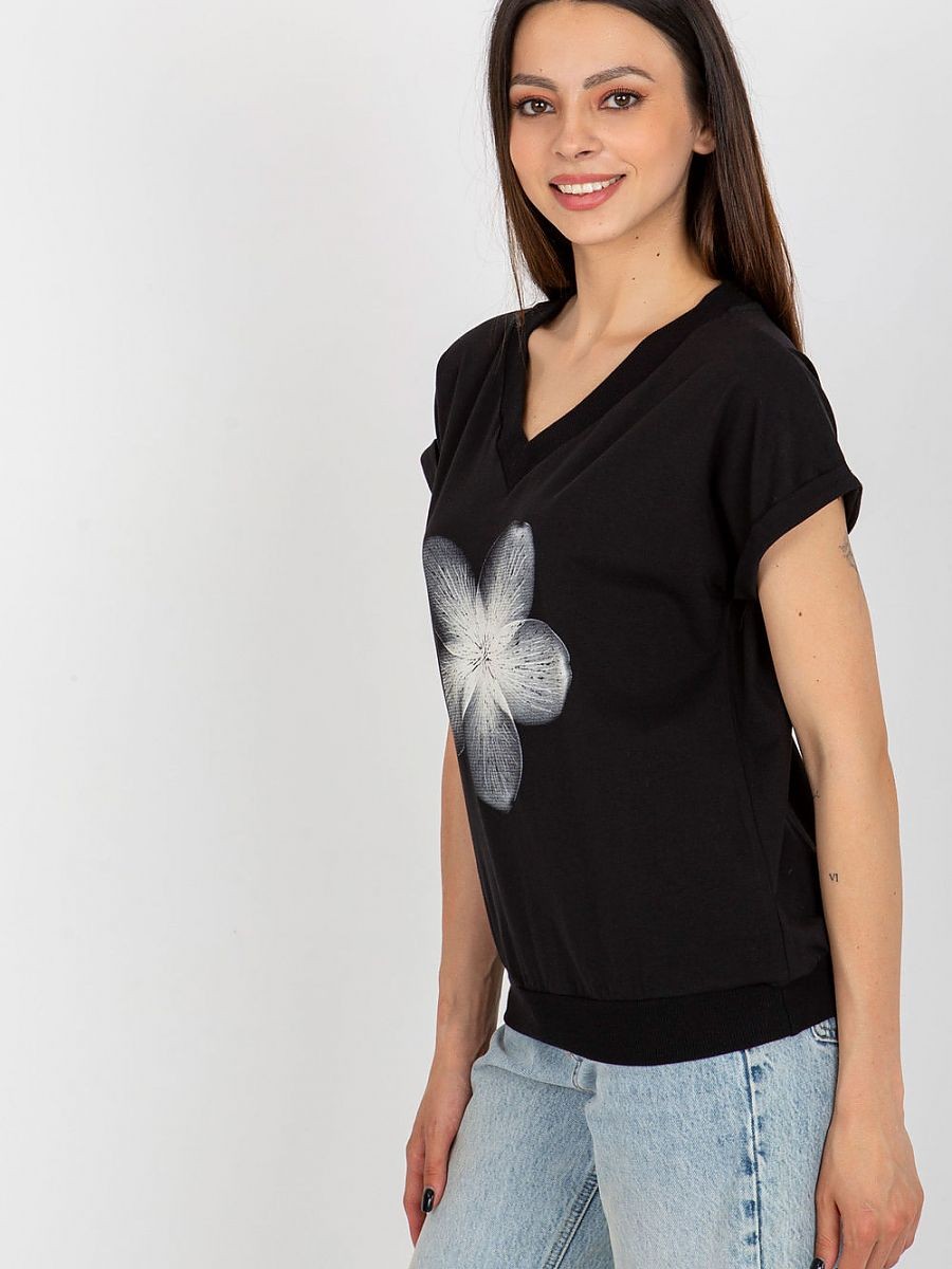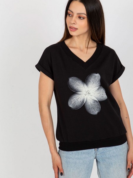 Chemisier en coton à manches courtes et encolure ronde. Imprimé décoratif sur le devant.