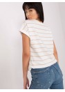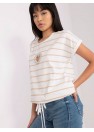 Blouse rayée à manches courtes et encolure ronde. Coeur découpé sur le devant avec strass et zircons décoratifs.