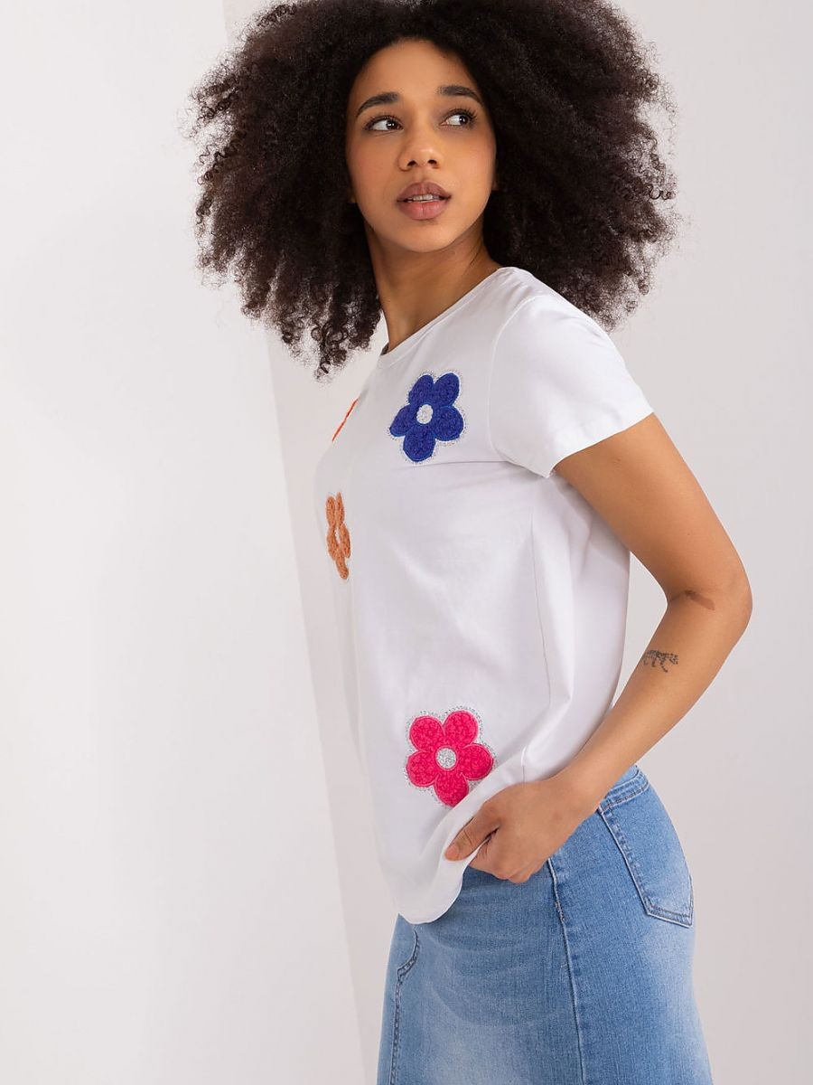 Ce chemisier est l'option parfaite pour celles qui recherchent une pièce de garde-robe décontractée mais mignonne. Fabriquée en coton de haute qualité, elle garantit un port confortable tout au long de la journée. Sa conception est axée sur la simplicité, mais elle est décorée de manière subtile mais frappante. Le devant présente de charmantes fleurs, dont la beauté est accentuée par de petits zircons. Ce délicat embellissement ajoute un charme particulier à la blouse et la rend parfaite pour de nombreuses occasions. La blouse a une longueur standard et des manches courtes, ce qui la rend idéale pour les journées d'été. L'encolure est ronde, ce qui la rend polyvalente et lui permet de s'adapter à de nombreuses tenues. C'est le choix parfait pour celles qui apprécient la simplicité avec une touche d'élégance, idéale pour une tenue de tous les jours. Il peut être facilement associé à une variété de pantalons ou de jupes pour créer des tenues élégantes et confortables pour tous les jours.