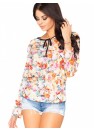 chemisier élégant avec mousseline. A la larme de décor avant. Encolure fini avec récurrents parage périodique, qui peut être lié en aucune façon. blouse doucement arrondi. manches longues.
