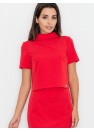 Chemisier simple avec des manches courtes et un col roulé superposé. Blouse avec une fermeture éclair couverte. Idéal pour de nombreuses occasions.
