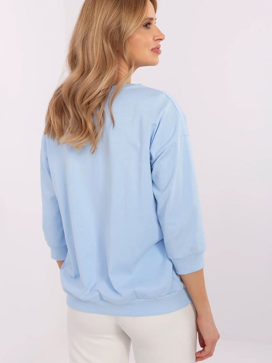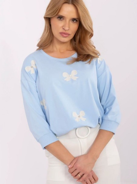 Chemisier décontracté pour femme, idéal pour tous les jours et pour le travail. Fabriqué dans un mélange doux de coton et d'élasthanne, il assure confort et ajustement parfait. Sa coupe classique de longueur standard avec des manches 3/4 en fait un élément polyvalent de la garde-robe. L'encolure ronde ajoute de la subtilité, et la broderie décorative en forme de cocardes avec des zircons confère au chemisier un caractère élégant et féminin. Un choix parfait pour les femmes qui apprécient le style et le confort dans leurs tenues quotidiennes.