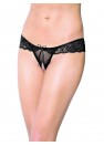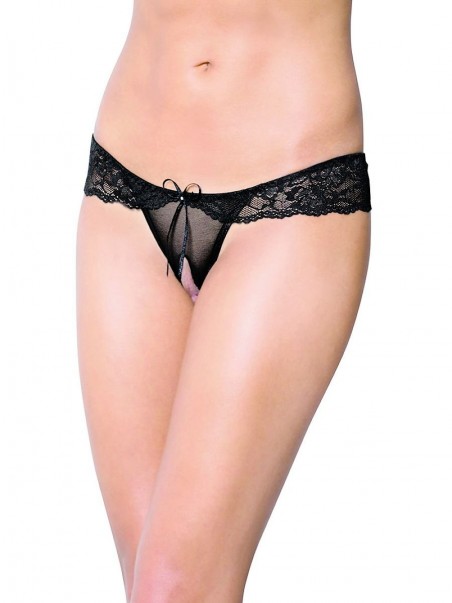 String en dentelle avec un devant en tulle avec un noeud décoratif. Découpe à l'entrejambe.