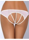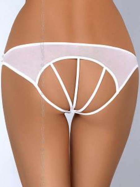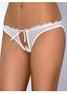 Maigre et tentant avec une profonde découpe à l'avant et des rayures intrigantes à l'arrière de la culotte ouverte, faite d'une délicate maille de tulle. De charmants volants et un nœud en satin reliant la coupe ajoutent du charme.