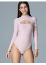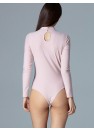 Body à manches longues en tissu élastique, façonne joliment la silhouette. Le haut est ajusté sur un col montant avec une larme décorative au-dessus du buste, avec une fermeture à ressort au dos.