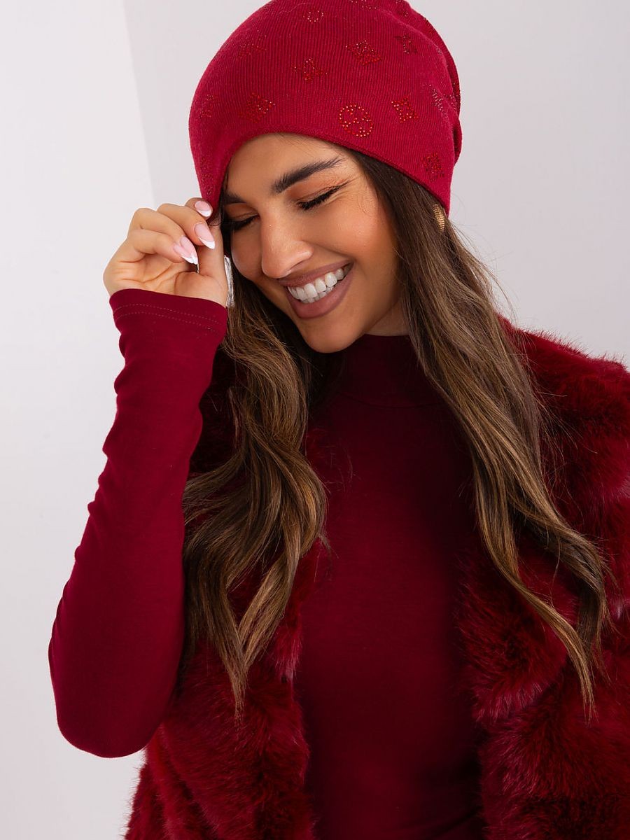 Chaud bonnet d'hiver pour femme en cachemire avec applications décoratives en strass.