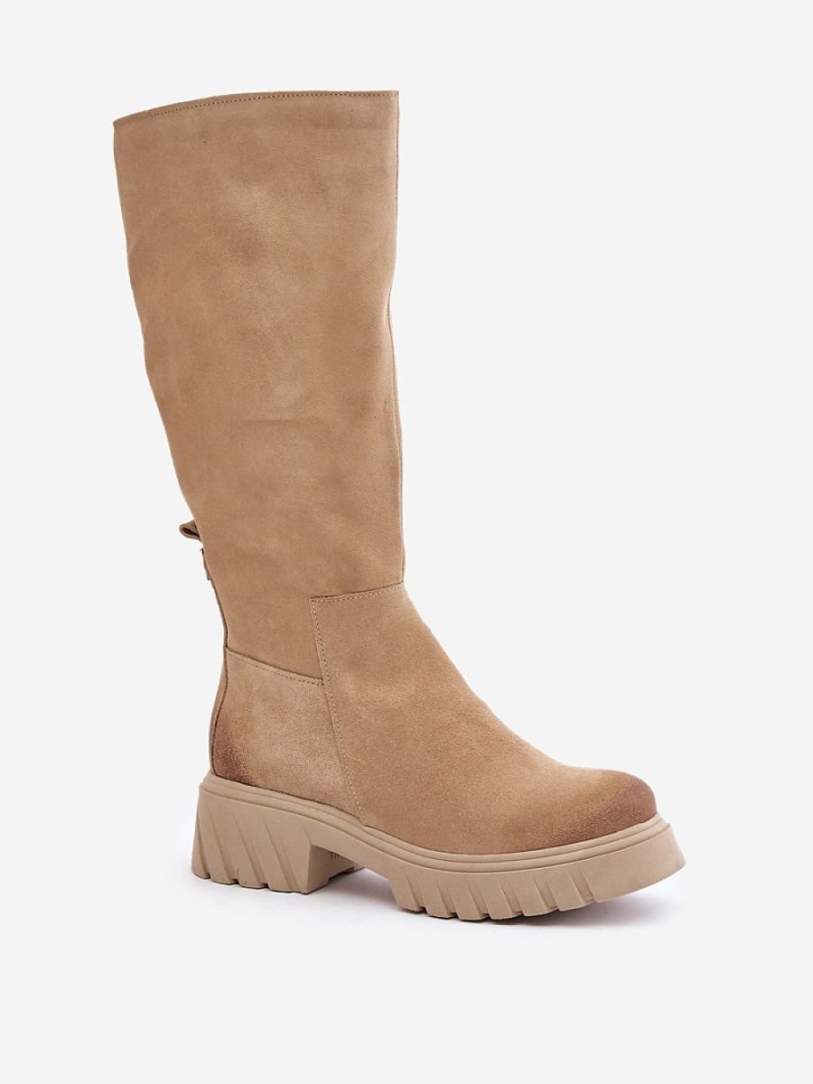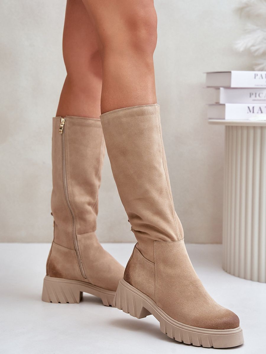 Ces élégantes bottes pour femmes sont fabriquées en cuir suédé naturel de première qualité. Ce modèle se caractérise par une fermeture éclair latérale sur la tige. Les bottes ont un nez arrondi et sont montées sur une plateforme et un talon plat. L'intérieur est isolé avec du feutre pour un confort thermique supplémentaire. Ces bottes sont une pièce essentielle de toute garde-robe !