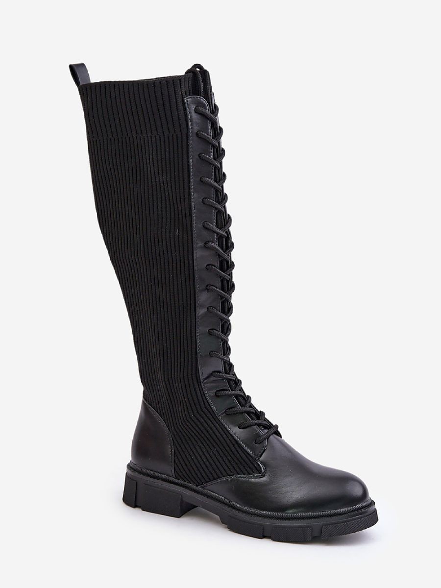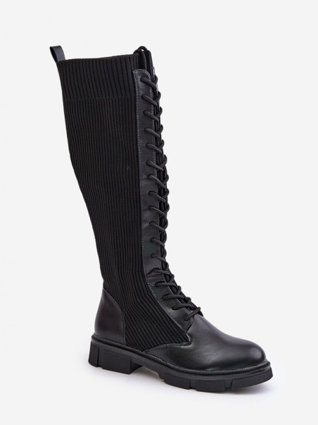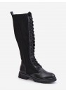 Bottes pour femmes fabriquées à partir d'une combinaison de cuir écologique et de textile. Le modèle se caractérise par des orteils arrondis, qui assurent le confort d'utilisation. L'intérieur de la chaussure est isolé par un couvre-chaussure uniquement à hauteur du pied. La tige flexible avec laçage ajoute à l'aspect général de la chaussure, qui est à la mode. Ces bottes s'accordent avec de nombreux styles, qu'ils soient décontractés ou plus élégants.
