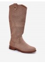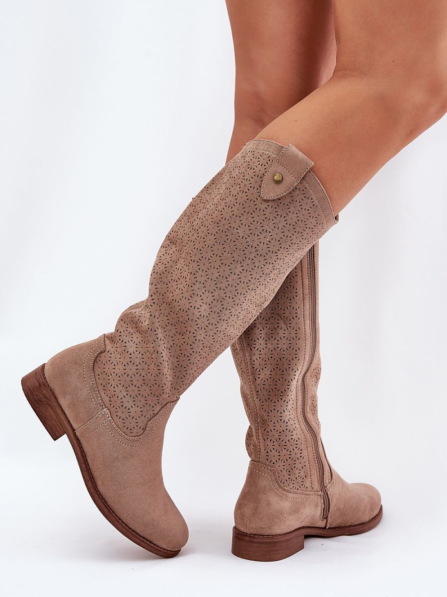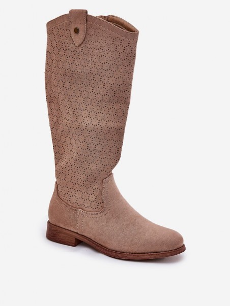 Bottes pour femmes de la marque S.Barski. Fabriquées en suédine écologique. Montées sur un talon plat, elles assurent confort toute la journée. Le motif ajouré sur la tige leur donne légèreté et caractère moderne, et la fermeture à glissière facilite l'enfilage. Ces bottes sont un choix parfait pour des tenues quotidiennes de printemps, alliant fonctionnalité et style à la mode.