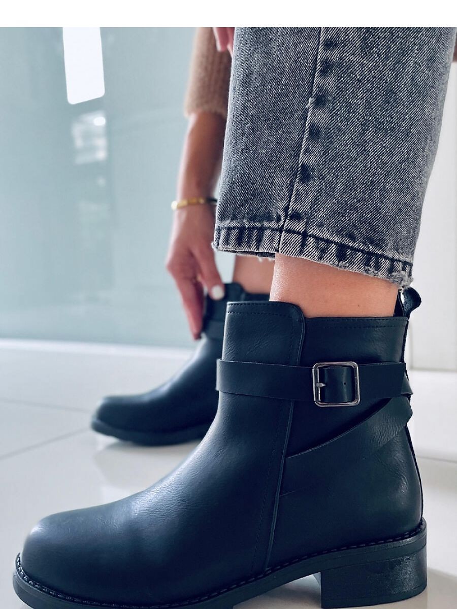 Bottes pour femmes à semelle plate. Il s'agit d'un modèle classique de coupe simple avec une boucle, grâce à laquelle il gagne en expressivité. La fermeture à glissière pratique et confortable est un autre argument en faveur de ces bottes uniques. Ils sont fabriqués en cuir biologique et sur une doublure en mousse.