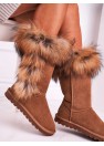 Un excellent choix pour la saison d'hiver sont les bottes de neige ! La tige haute atteint le milieu du mollet et l'intérieur est recouvert d'une fourrure épaisse et chaude. De plus, le dessus et les côtés sont décorés de fourrure duveteuse, ce qui leur donne un charme fou. Les bottes de neige sont fabriquées en cuir suédé naturel. Ces chaussures sont parfaites pour les journées froides d'automne ou même d'hiver !