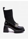 Les bottes pour femmes sont fabriquées en cuir écologique de haute qualité. La tige a la forme d'une chaussette. Une bride froissée sur le devant, décorée de strass scintillants. Boîte à orteils carrée. Modèle monté sur un talon en forme de bloc stable. Contrefort de talon rigidifié. Ce modèle est le HIT de la saison, à vous de l'avoir !