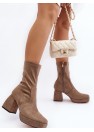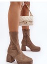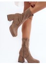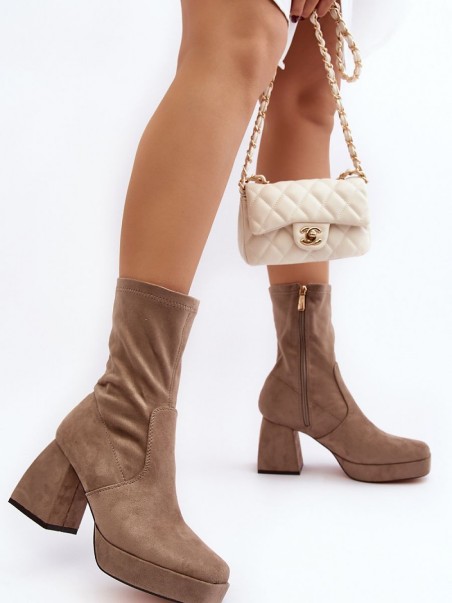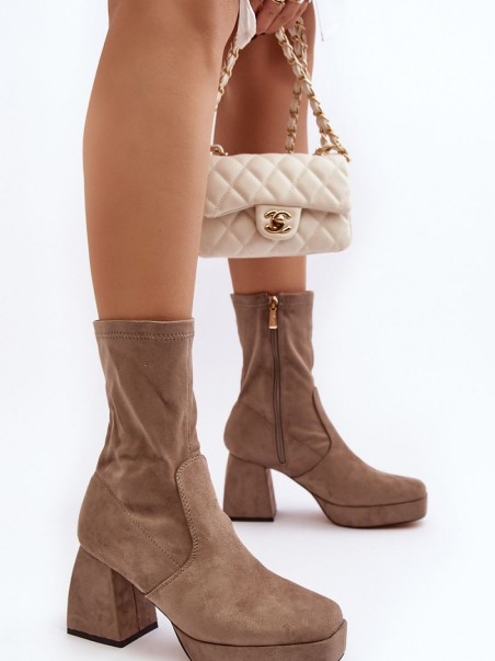 Bottes pour femmes en suédine écologique. Montées sur un talon bloc massif et une plateforme. Bout carré. Contrefort de talon renforcé. Tige zippée jusqu'à la cheville. Semelle intérieure en cuir écologique pour un meilleur confort d'utilisation. Parfaites pour l'automne !
