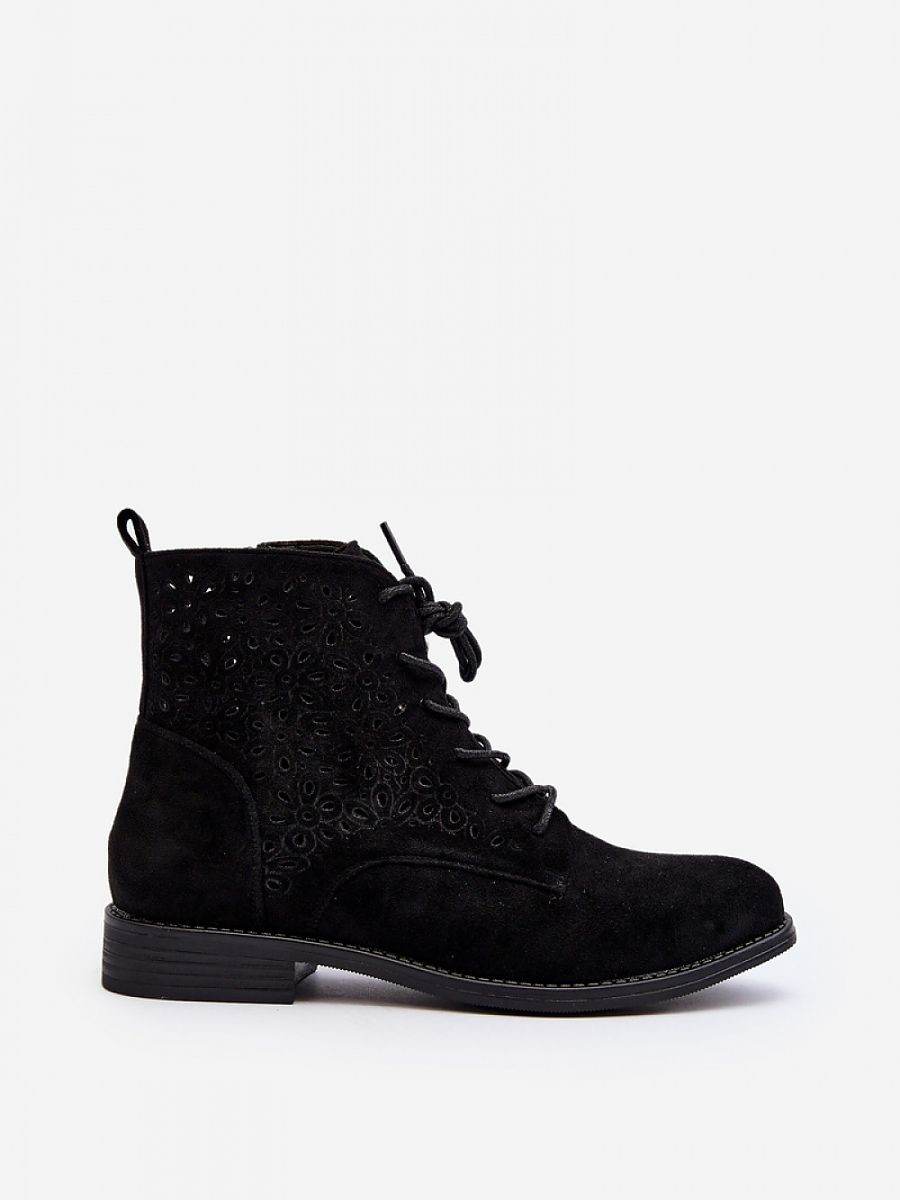 Bottes pour femmes en éco-suède. Tige ajourée décorée de fleurs. Montées sur un talon plat. Zippées sur le côté et dotées d'un laçage pour un meilleur ajustement. Boîte à orteils arrondie. Ce modèle est en outre doté d'un contrefort de talon renforcé. N'oubliez pas de consulter également les autres modèles de bottes disponibles dans notre offre !