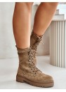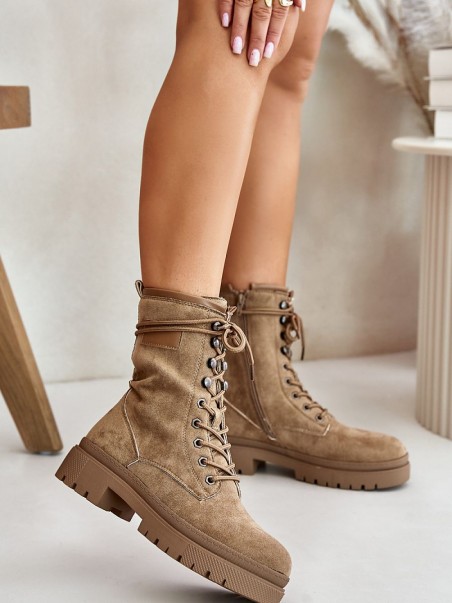 Travailleuses pour femmes en éco-suède. Talon plat. Bout arrondi. Zippées et lacées. Coupe classique et tendance qui s'harmonisera avec de nombreux styles d'automne !