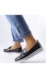 Les élégantes baskets Bloomsburg Sneakers sont le parfait mélange de style et de confort. Fabriquées en cuir noir perforé écologique, elles ont un bout rond et une plateforme basse. L'intérieur des chaussures est doublé d'une semelle en cuir souple, offrant un confort supplémentaire. La fermeture à enfiler facilite leur enfilage, et la semelle en caoutchouc blanc leur donne un aspect moderne. Parfaites pour les tenues quotidiennes, qu'elles soient élégantes ou streetwear. Disponibles en tailles standard, nous recommandons de choisir votre taille habituelle. Idéales pour l'été, sans nécessité de chaleur supplémentaire.