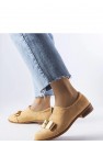 Les mocassins beiges avec un nœud Poplar sont le choix idéal pour les jours d'été. Ils ont un talon plat et une tige basse devant la cheville, ce qui les rend confortables et parfaits pour tous les jours. De plus, ils sont ornés d'un nœud et de clous, ce qui leur donne un caractère unique. Fabriqués en éco-cuir suédé de haute qualité, la semelle intérieure est en cuir naturel, ce qui garantit un confort de port. Ils se marieront parfaitement avec des tenues avec un chemisier orné de chaînes décoratives et une jupe en cuir. La taille est standard, il est donc recommandé de choisir sa propre taille lors de l'achat. La semelle est en caoutchouc de couleur marron et la fermeture est glissée. Des chaussures parfaites pour l'été!