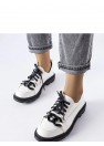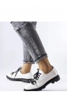 Les mocassins blancs avec une chaîne Allain sont les chaussures idéales pour l'été à venir. Ils ont une semelle à la mode avec un talon carré plat et une tige basse devant la cheville. L'avant de la chaussure est orné d'une courte lacet et des coutures minimalistes leur donnent un caractère moderne. Fabriqués en simili cuir, ils ont une semelle intérieure en cuir naturel pour un confort supplémentaire. Ils iront parfaitement avec un chemisier à chaînes décoratives et une jupe en cuir. La numérotation est standard, il est donc conseillé de choisir sa taille habituelle. Les chaussures ne sont pas doublées et leur semelle est en caoutchouc de couleur noire. Fermées par lacet, elles sont non seulement élégantes, mais aussi confortables et pratiques pour tous les jours.