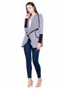 Élégant pull déboutonné pour femme avec un col rembourré. Manches terminées par une couleur contrastée. Poches sur les côtés. Pull terminé par un passepoil contrasté.