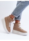 Chaussures de sport pour femmes à la mode, en cuir naturel. Montées sur une plateforme massive. Dessus derrière la cheville. Bout arrondi. Modèle avec laçage classique. Idéales pour les journées de printemps ! Cette coupe vous plaira à coup sûr !