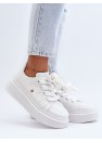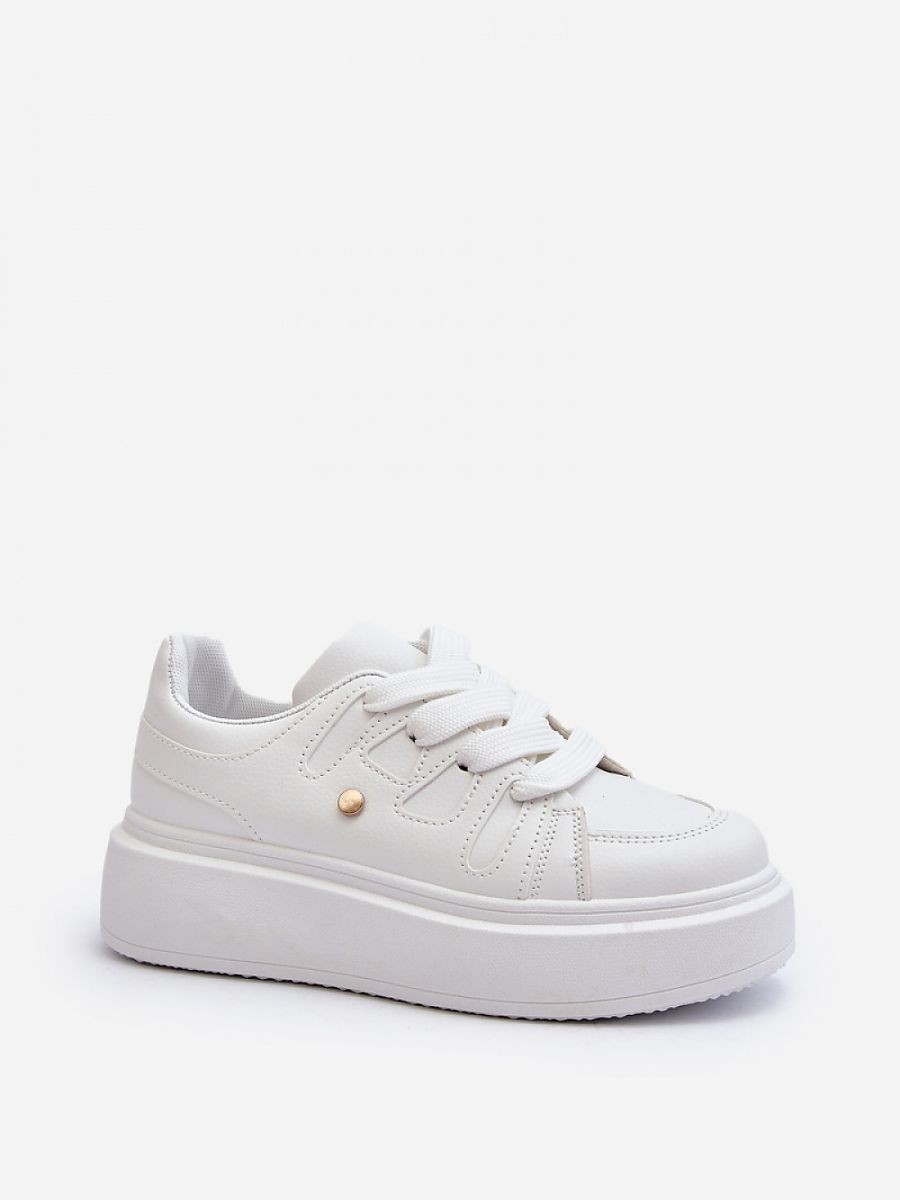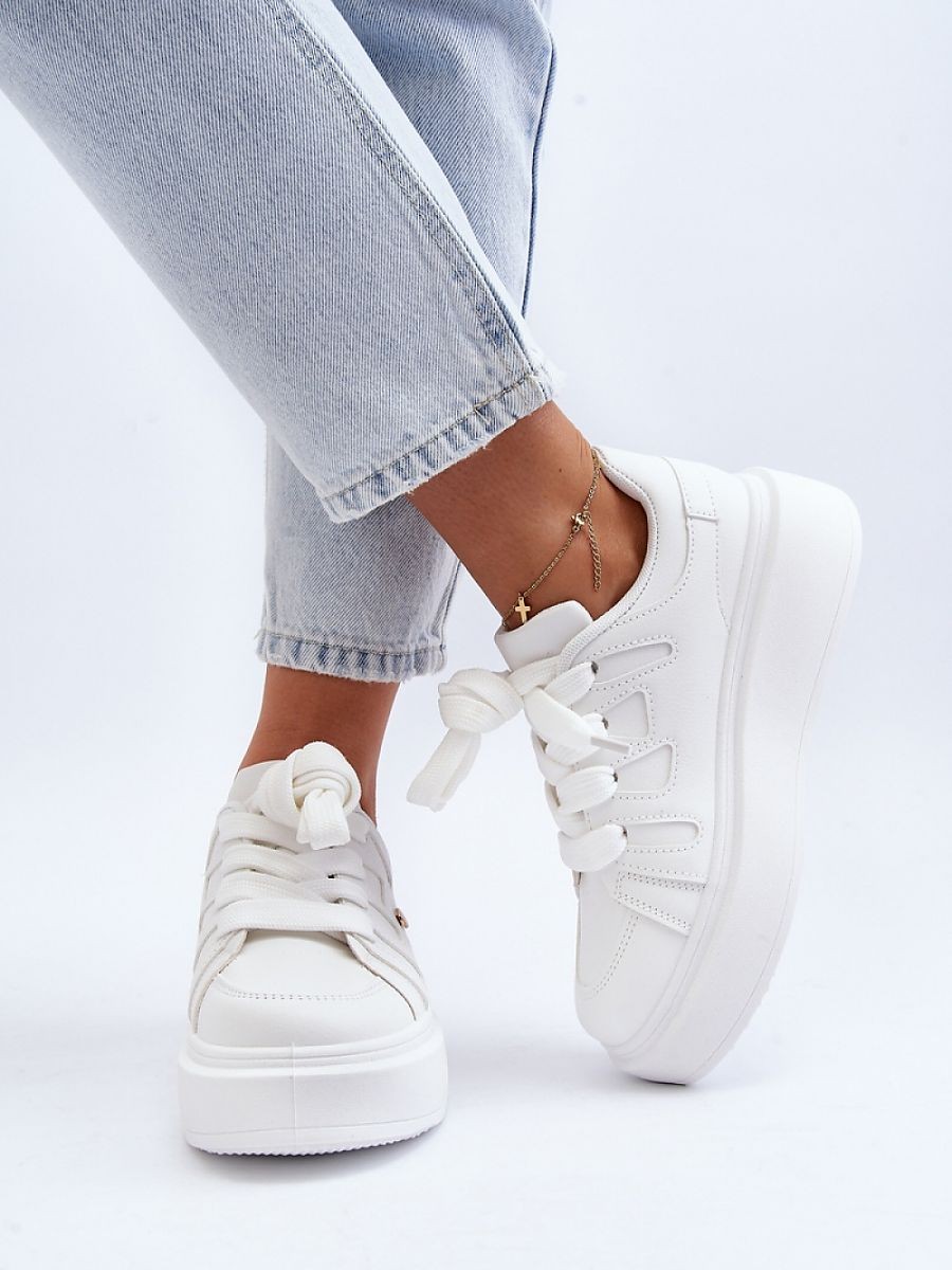 Baskets pour femmes en cuir écologique. Montées sur une plateforme. Bout arrondi. Semelle intérieure souple pour un confort d'utilisation. Cette coupe s'associe parfaitement à un pantalon. Parfaites pour les activités de tous les jours !