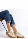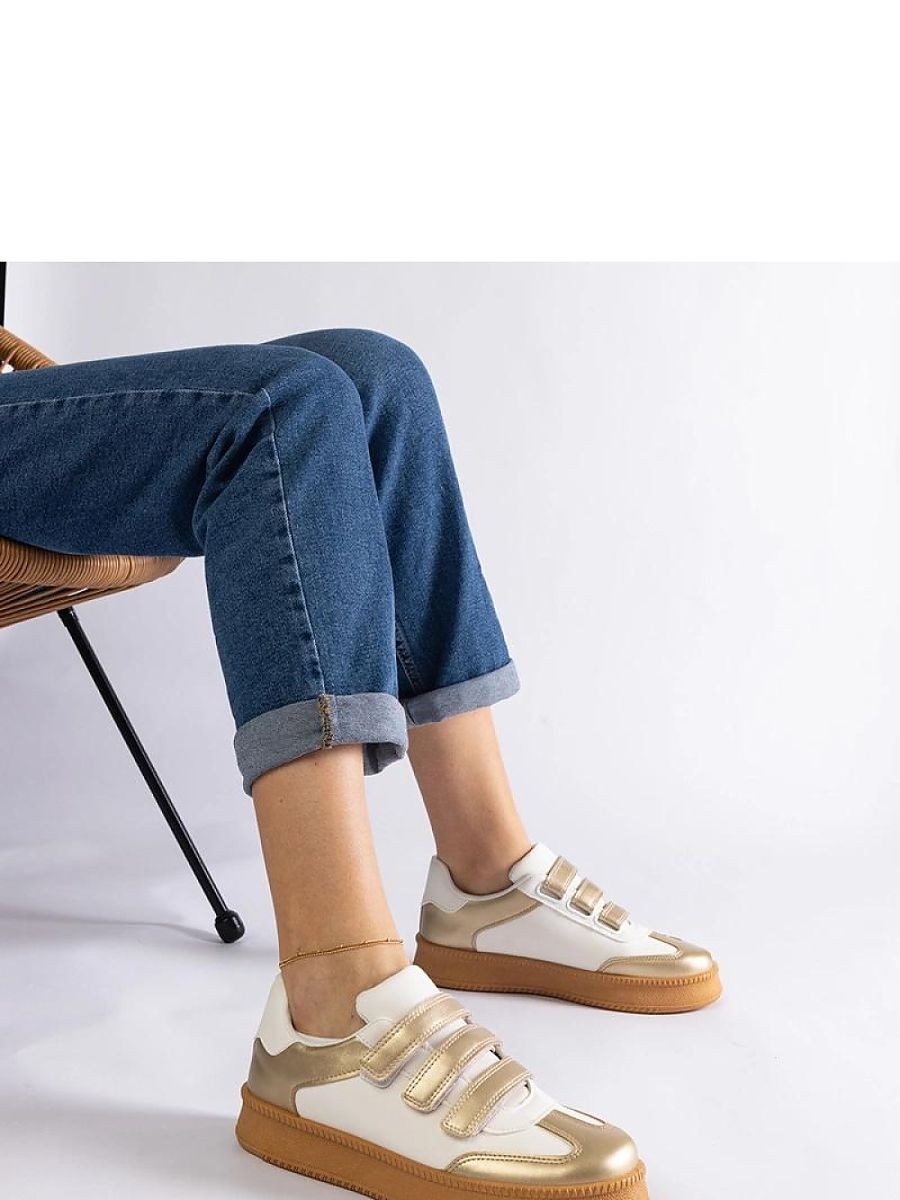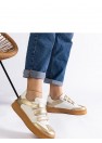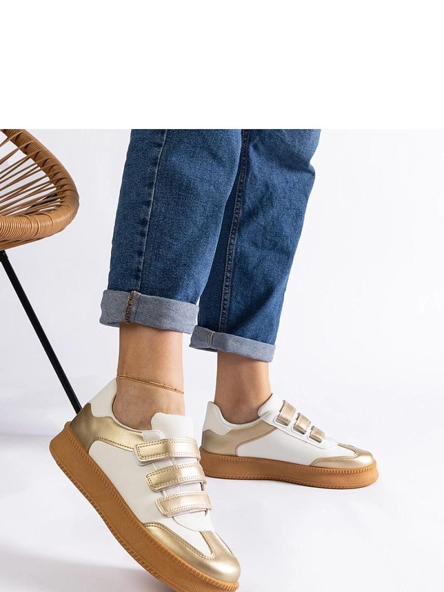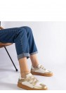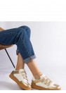 Les élégantes baskets dorées Mena sont une proposition idéale pour ceux qui apprécient le confort et le style. Fabriquées en cuir écologique de haute qualité, fermées par des velcros pratiques, elles garantissent un confort de port et une durabilité. Les baskets basses conviennent parfaitement au quotidien, s'adaptant aussi bien aux tenues décontractées qu'aux tenues plus élégantes. La semelle en caoutchouc de couleur marron assure stabilité et confiance dans chaque pas. C'est un choix parfait pour ceux qui privilégient le confort et un design à la mode.