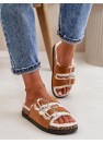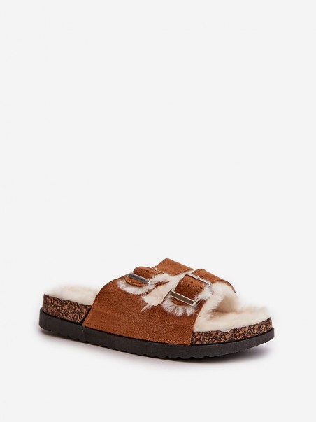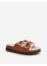Chaussons pour femmes en fourrure douce et chaude pour les jours plus frais. Ils ont deux sangles réglables avec des boucles qui permettent un ajustement parfait au pied. Montés sur une plateforme, ils ajoutent un peu de hauteur tout en assurant stabilité et confort de port. Parfaits pour des moments de détente à la maison.