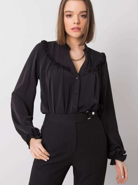 Chemise noire à manches longues pour femmes, avec boutons. Parfait pour de nombreuses occasions.