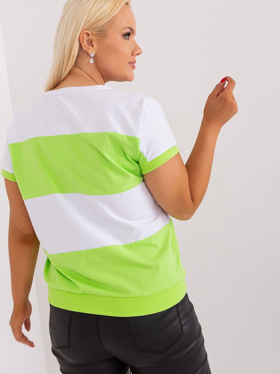 Chemisier grande taille à manches courtes et encolure ronde. Blouse en tissu à larges rayures.