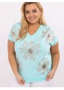 Chemisier quotidien pour femme de grande taille dans un style décontracté est un mélange de confort et de charme féminin. Fabriqué en coton doux et respirant avec une touche d'élasthanne, il s'adapte parfaitement à la silhouette, offrant une liberté de mouvement et un confort toute la journée. Modèle de longueur standard, à manches courtes et col en V, mettant en valeur délicatement la ligne du cou. L'élément décoratif principal est le motif floral imprimé enrichi de strass brillants, ajoutant une touche délicate et élégante au chemisier. Parfait au quotidien avec des jeans, des jupes ou des pantalons en tissu. Une excellente proposition pour les femmes à la recherche d'un chemisier confortable et élégant pour toutes les occasions.