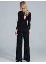 Combinaison à manches longues et à jambes larges en maille côtelée fluide, avec une fente au dos et une fermeture à boutons-pression.