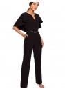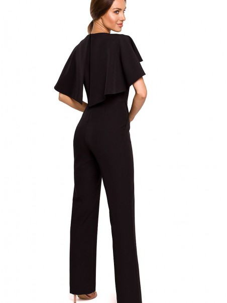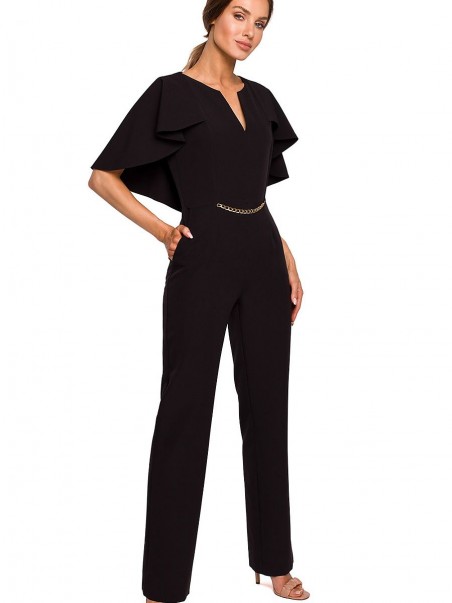 Le pouvoir est dans les détails. Cette création féminine pour les occasions spéciales est un pantalon confortable avec une finition exceptionnellement féminine, une cape et une chaîne décorant le devant lisse du costume. La combinaison a une fermeture à glissière dissimulée.