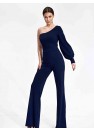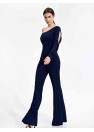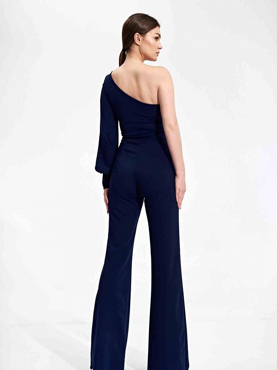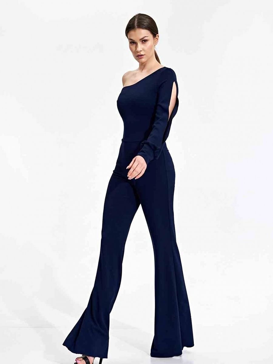 Combinaison élégante et ajustée avec une manche longue terminée par un poignet avec une fente décorative. Des bas avec des jambes larges. Costume sans poches et sans fermeture.