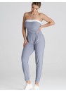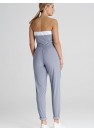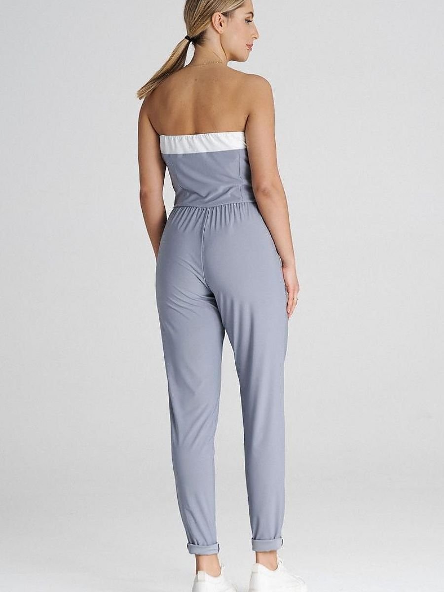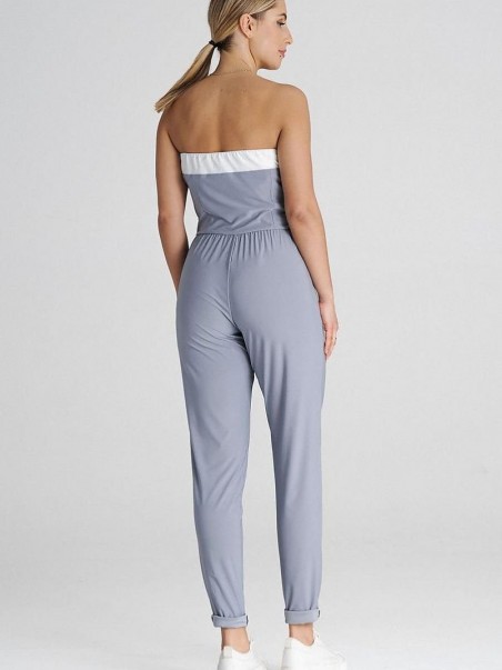 Combinaison décontractée de coupe classique. Le haut est sans bretelles, avec une incrustation contrastée, et le bas est doté de longues jambes et de plis décoratifs. La combinaison est munie de poches discrètes.