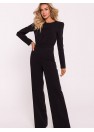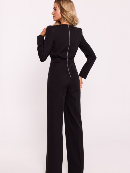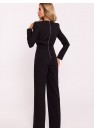 Cette élégante combinaison pour femme est fabriquée dans un tissu de haute qualité, alliant style moderne et confort. Le haut de la combinaison est ajusté, avec des manches longues, et les épaules ont été accentuées par des coussinets hauts, ce qui donne à la silhouette un aspect net et chic. Une fermeture éclair métallique décorative se trouve dans le dos et a une fonction à la fois pratique et décorative. Les jambes sont légèrement élargies, ce qui ajoute une touche décontractée et élégante à l'ensemble. Le costume a été conçu et cousu en Pologne, ce qui garantit la précision et la haute qualité du produit.