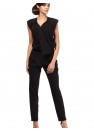Le costume pantalon costume sans manches top avec une enveloppe scellée, plissés et les poches. Jambes effilées vers le bas avec des menottes. Sur la glissière sur le côté.