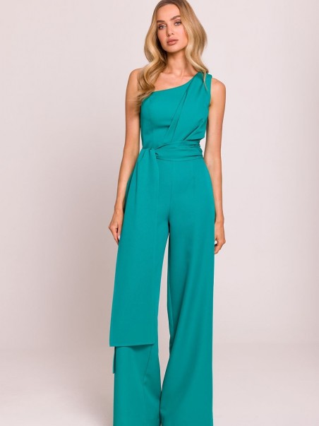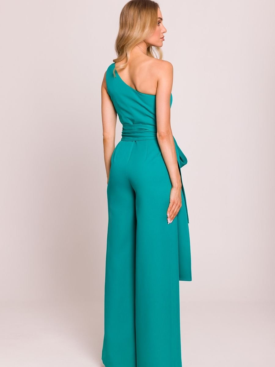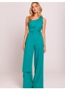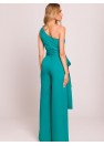 Combinaison élégante et asymétrique avec motif sur une épaule, qui attire l'attention par sa forme unique. Les longs rubans cousus sur les côtés lui donnent légèreté et caractère spectaculaire, permettant une stylisation intéressante. Les jambes légèrement évasées offrent confort et élégance. Modèle fermé par une fermeture éclair cachée sur le côté, garantissant un ajustement parfait. Conçu et fabriqué en Pologne avec le plus grand souci du détail, alliant modernité et classicisme.