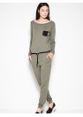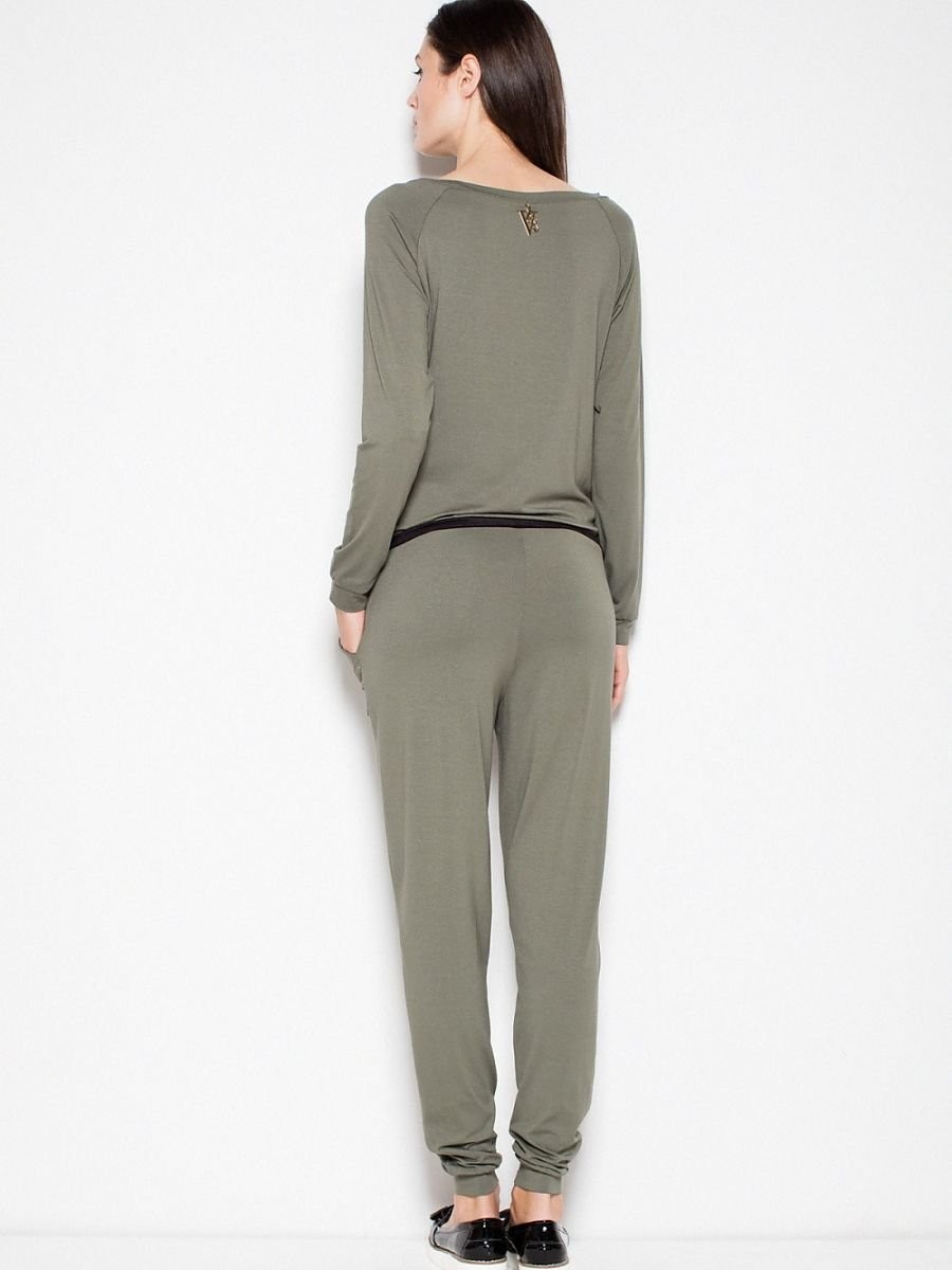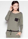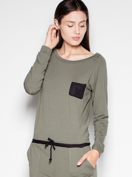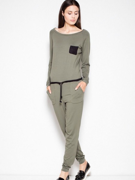 Combinaison chic à manches longues et jambes longues. Il comporte une poche et une ceinture de couleur contrastée. Très confortable et extrêmement élégant à la fois.