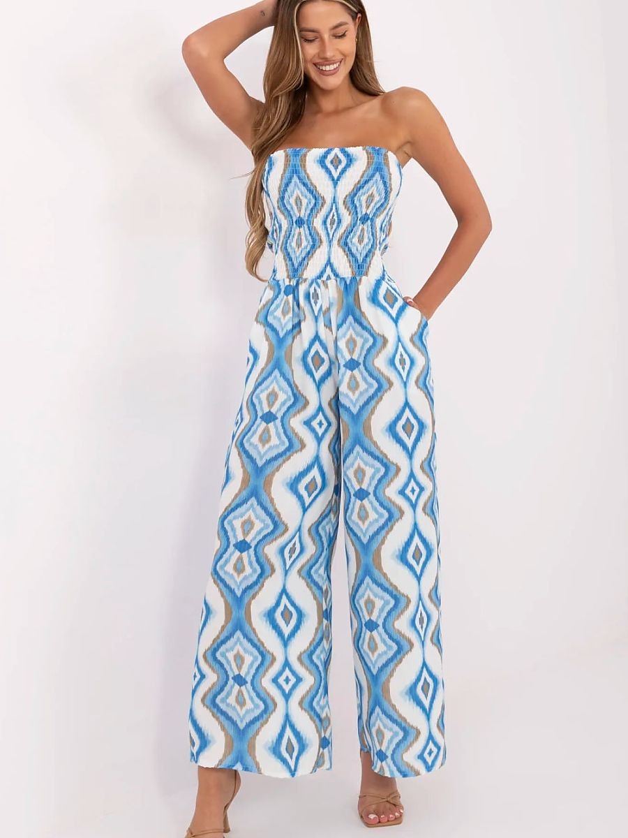 Une combinaison élégante et confortable avec un motif géométrique est une proposition idéale pour tous les jours. Fabriqué en viscose légère et aérée, il est parfait pour les jours plus chauds, offrant confort et liberté de mouvement. Le design moderne combine un style féminin avec une décontraction urbaine. Le modèle sans manches, avec un décolleté rectangulaire et de délicats plis dans la partie supérieure, ajoutant du volume et un charme subtil. Les bonnets rembourrés offrent un bon maintien de la poitrine et permettent de porter la combinaison sans soutien-gorge. L'absence de fermeture facilite l'enfilage, il suffit de le passer par-dessus la tête. Les longues jambes larges se disposent magnifiquement et allongent la silhouette visuellement, tandis que les poches pratiques ajoutent de la fonctionnalité. C'est un choix parfait pour les sorties quotidiennes, les promenades ou les rencontres lorsque vous voulez avoir l'air à la mode tout en vous sentant à l'aise.