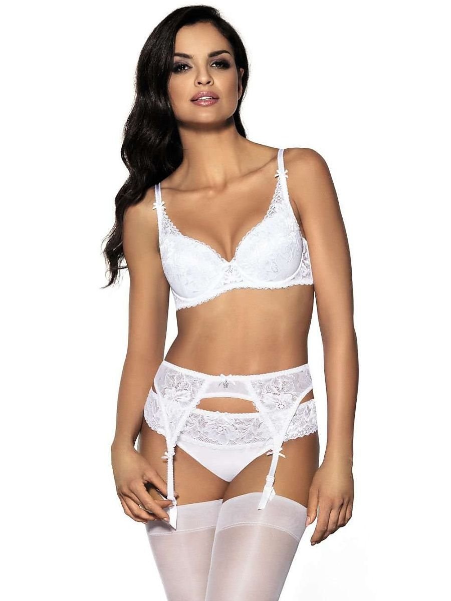 Porte-jarretelles sexy de Hannah. Entièrement composé de charmante dentelle florale, le dos est décoré de fines bandes de nœuds.