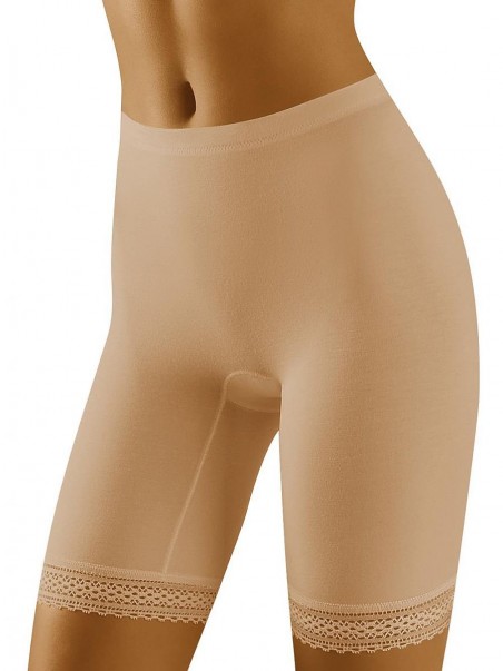 Slip bermuda ajusté pour protéger la peau contre les irritations ou les frottements. Façonner légèrement le corps. Jambes accentuées par une délicate dentelle. Composition : 95% micromodal, 5% élasthanne.